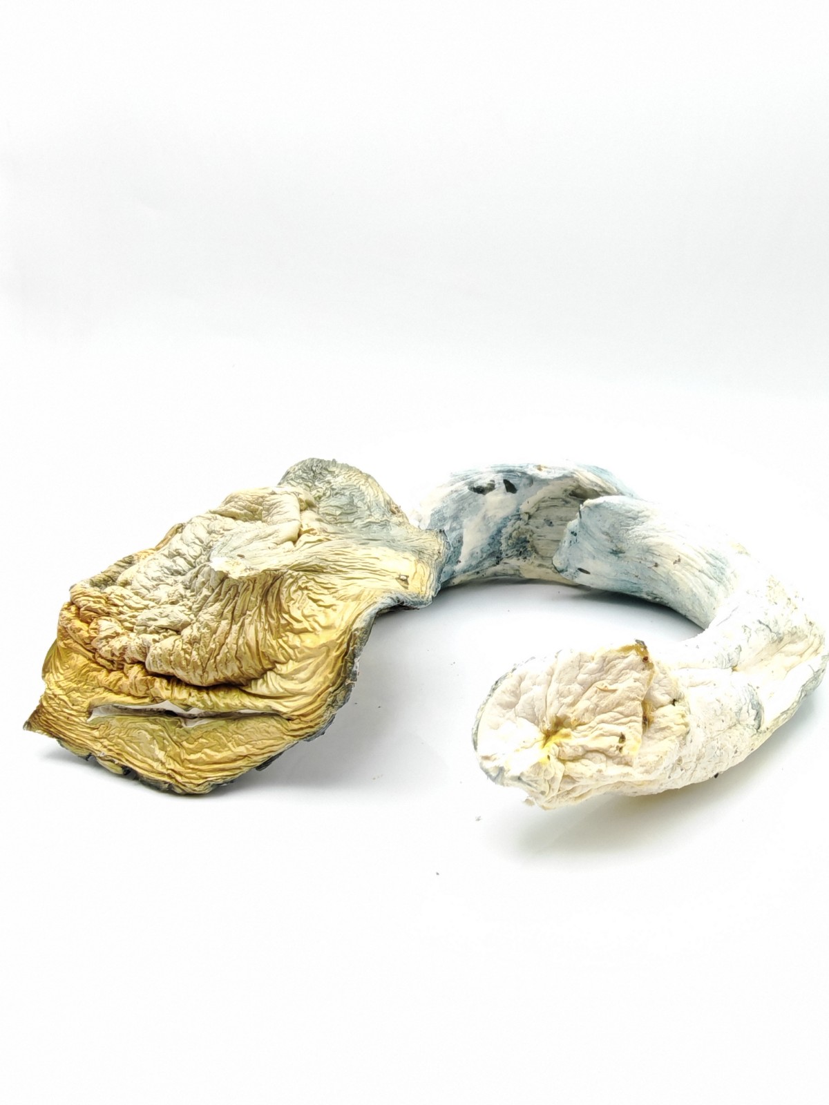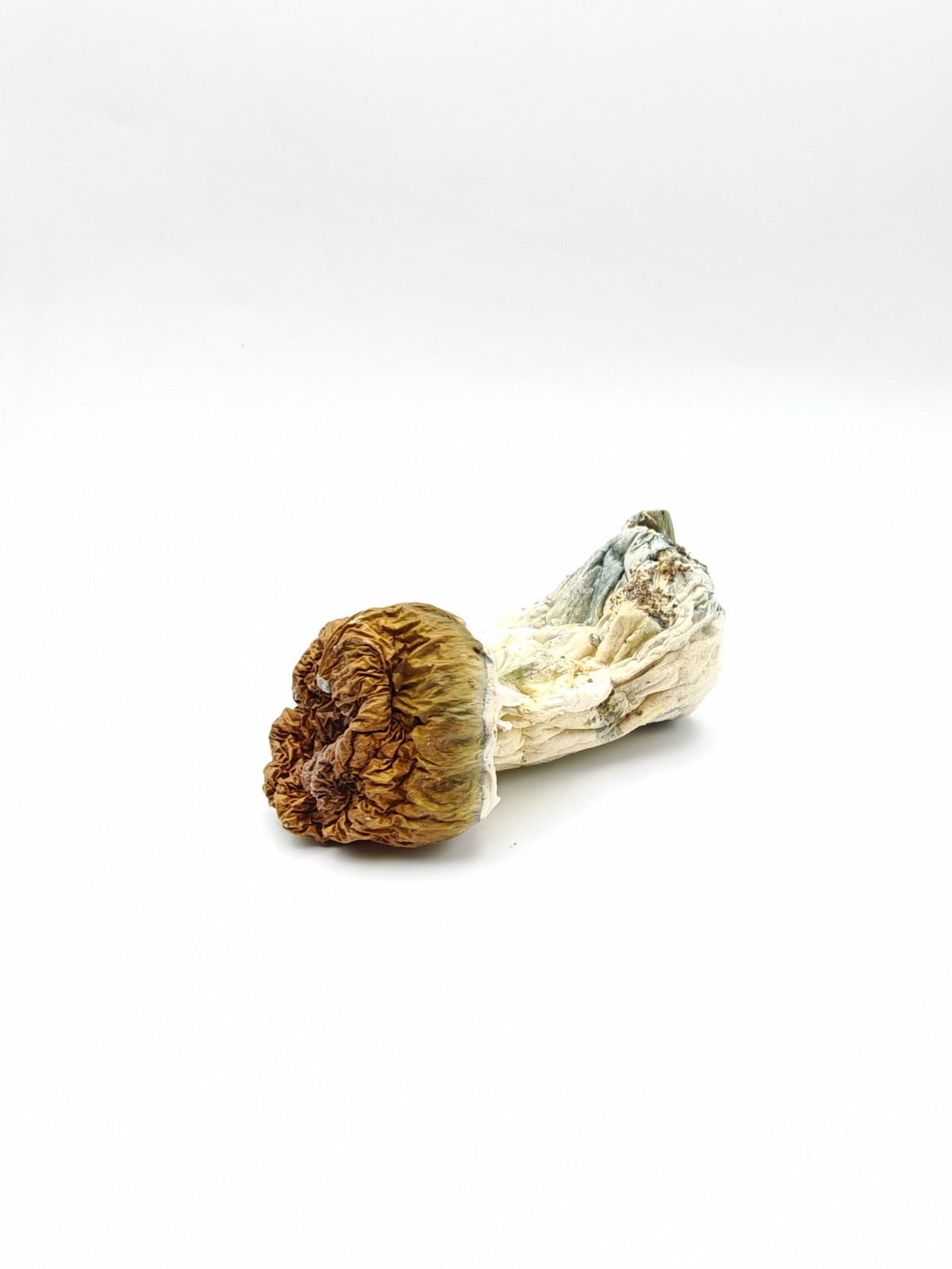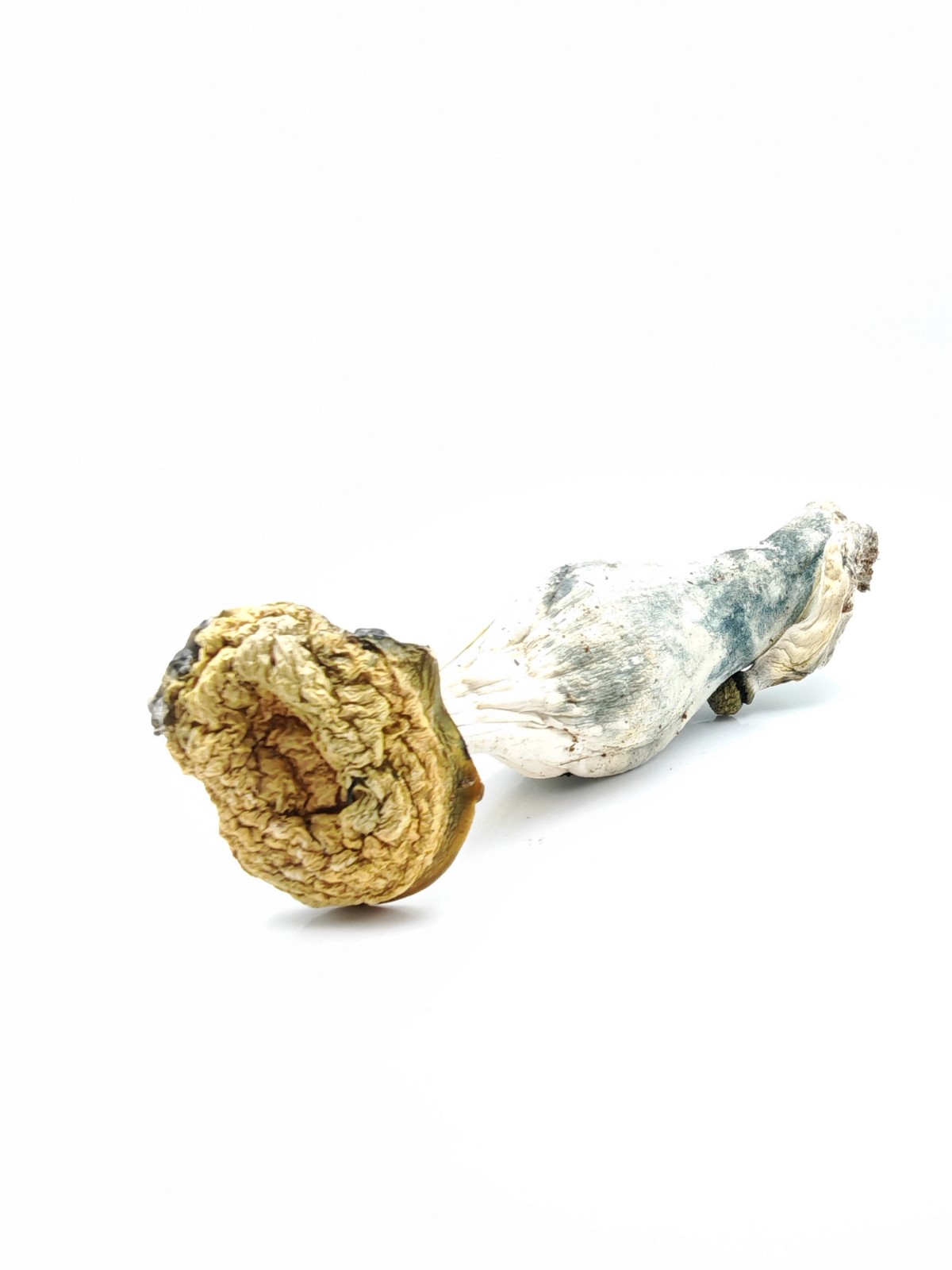 As with all psilocybin-containing mushrooms, it’s common for them to have blue bruising on the stem, this is often used to identify high psilocybin and psilocin content. They are also identifiable by their underdeveloped cap and the absence of a veil separating the cap and stem.